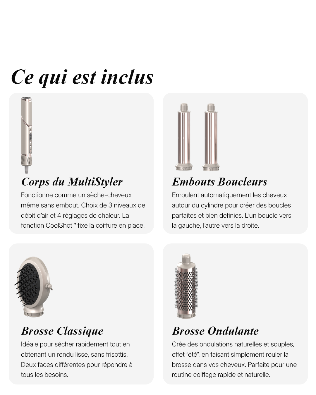 Le coffret Eloane OmniFlex Pro comprend 8 embouts interchangeables conçus pour s’adapter à toutes les envies de coiffure :
