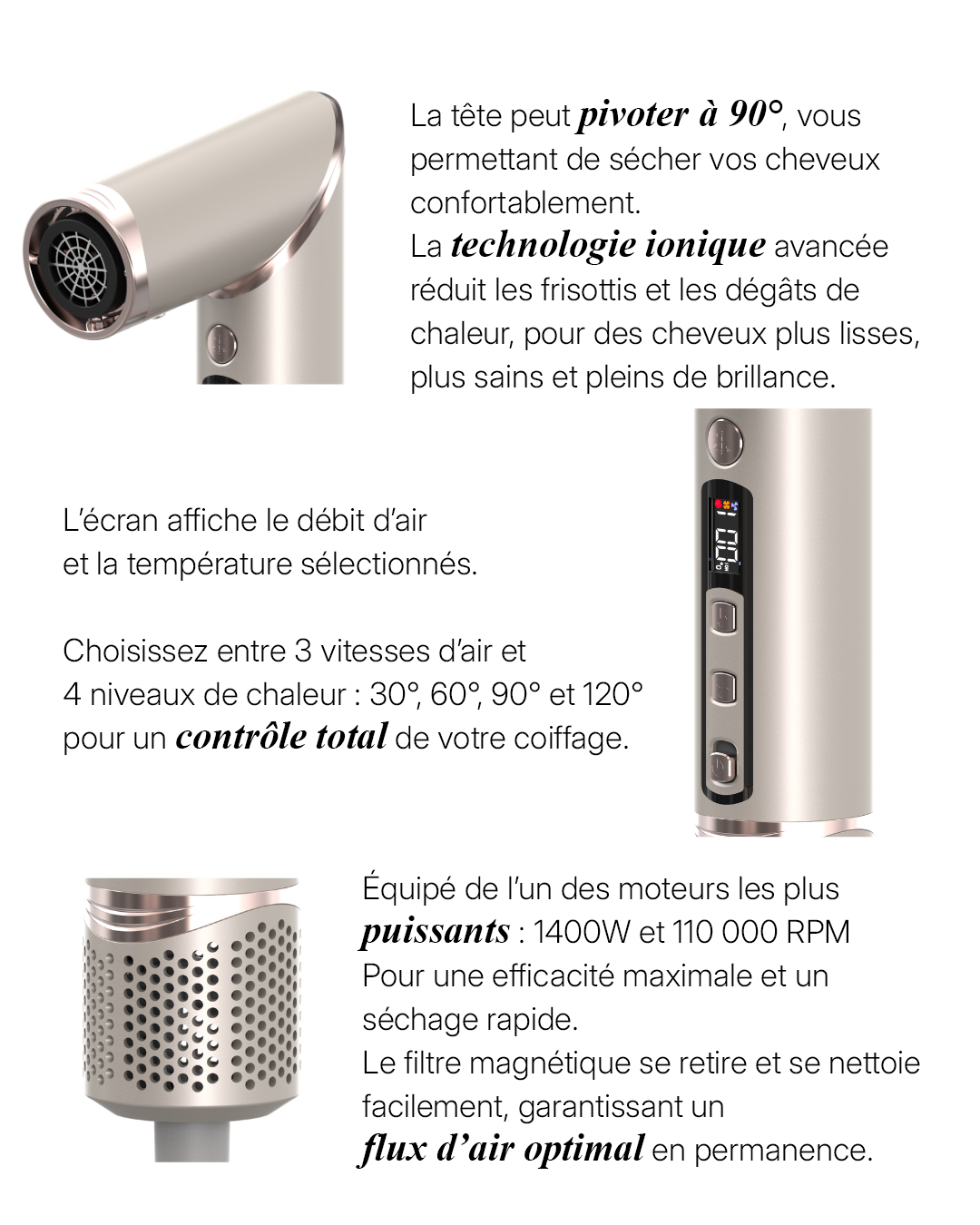 moteur puissant et d'une technologie ionique avancée qui réduit les
