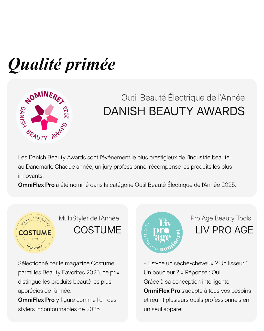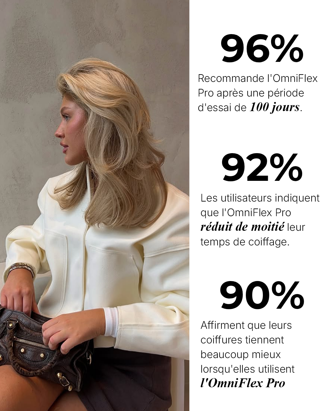Lors du développement du OmniFlex Pro 8 en 1, nous nous sommes assurés qu'il était adapté à tous les types de cheveux.